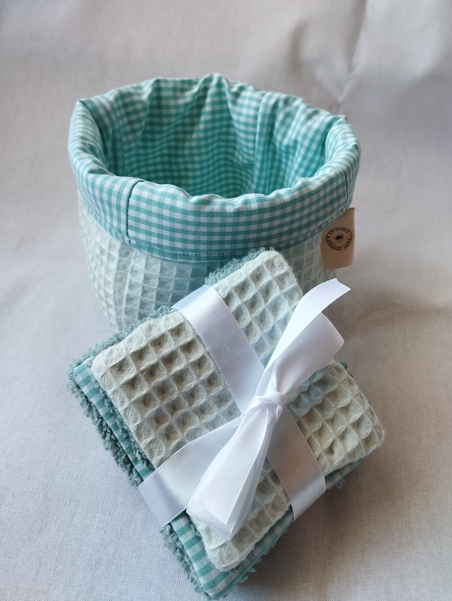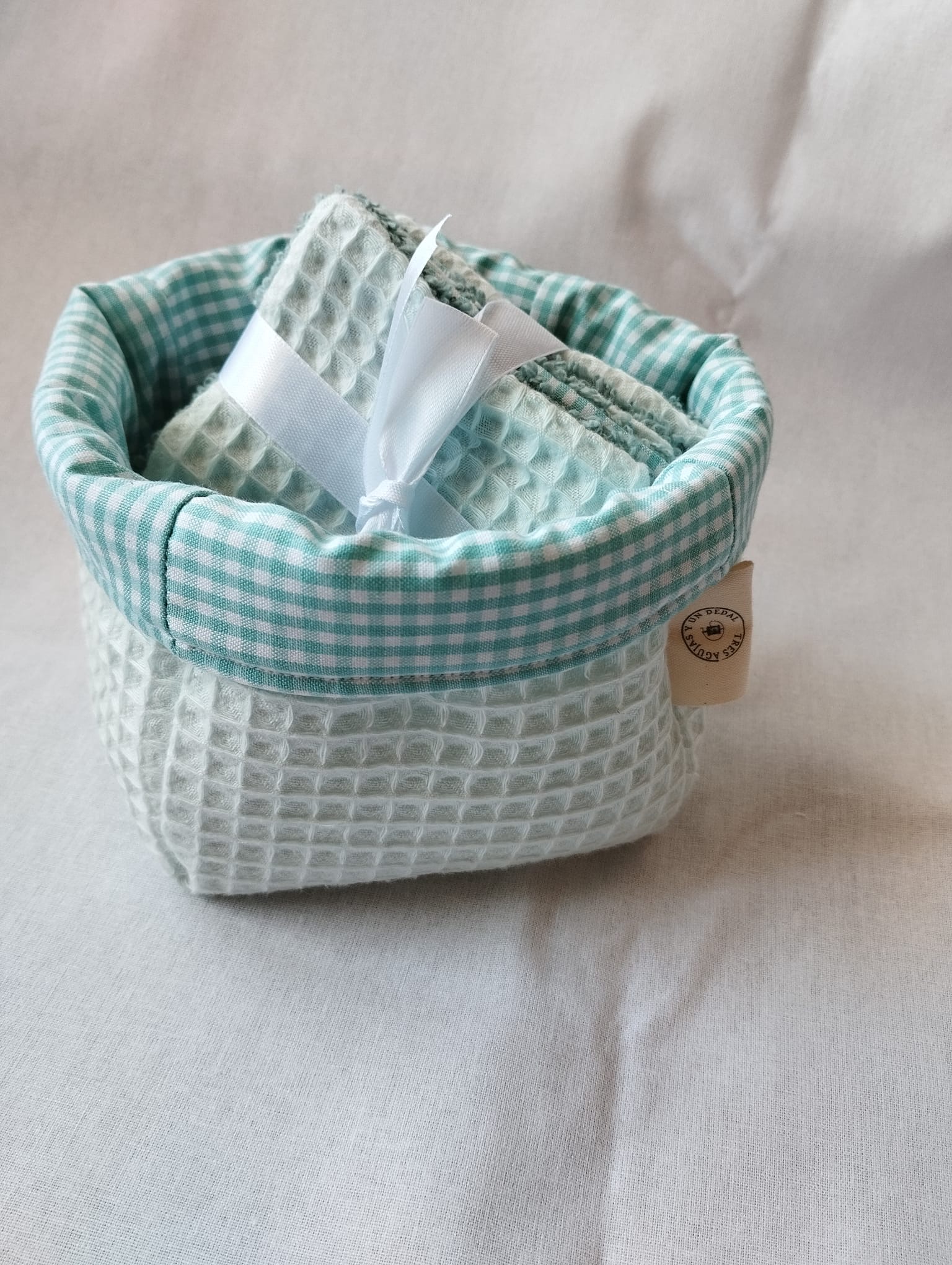 Cesta de toallitas ecológicas – Cuadrados verde claro