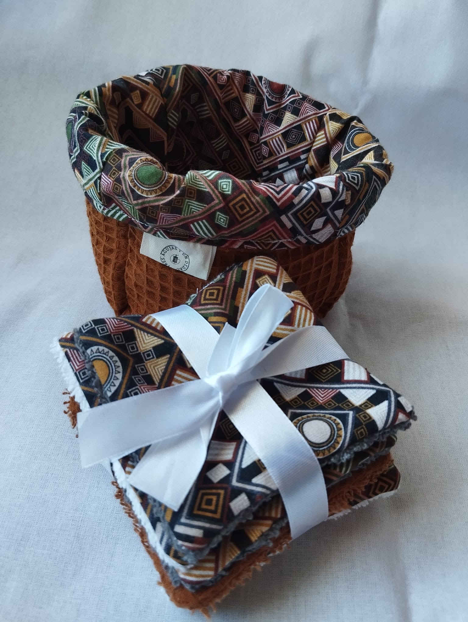 Cesta de toallitas ecológicas – Marron con figuras geométricas